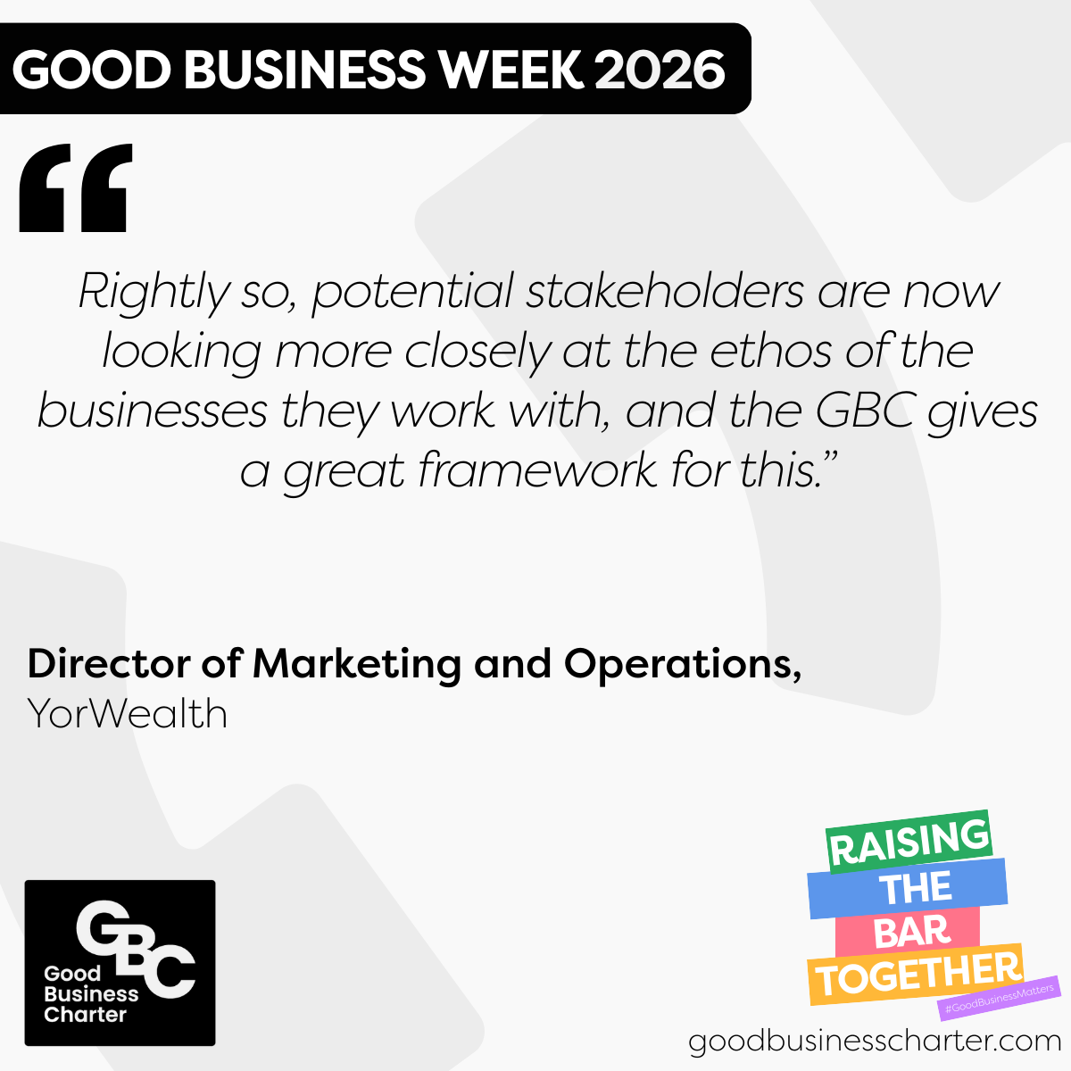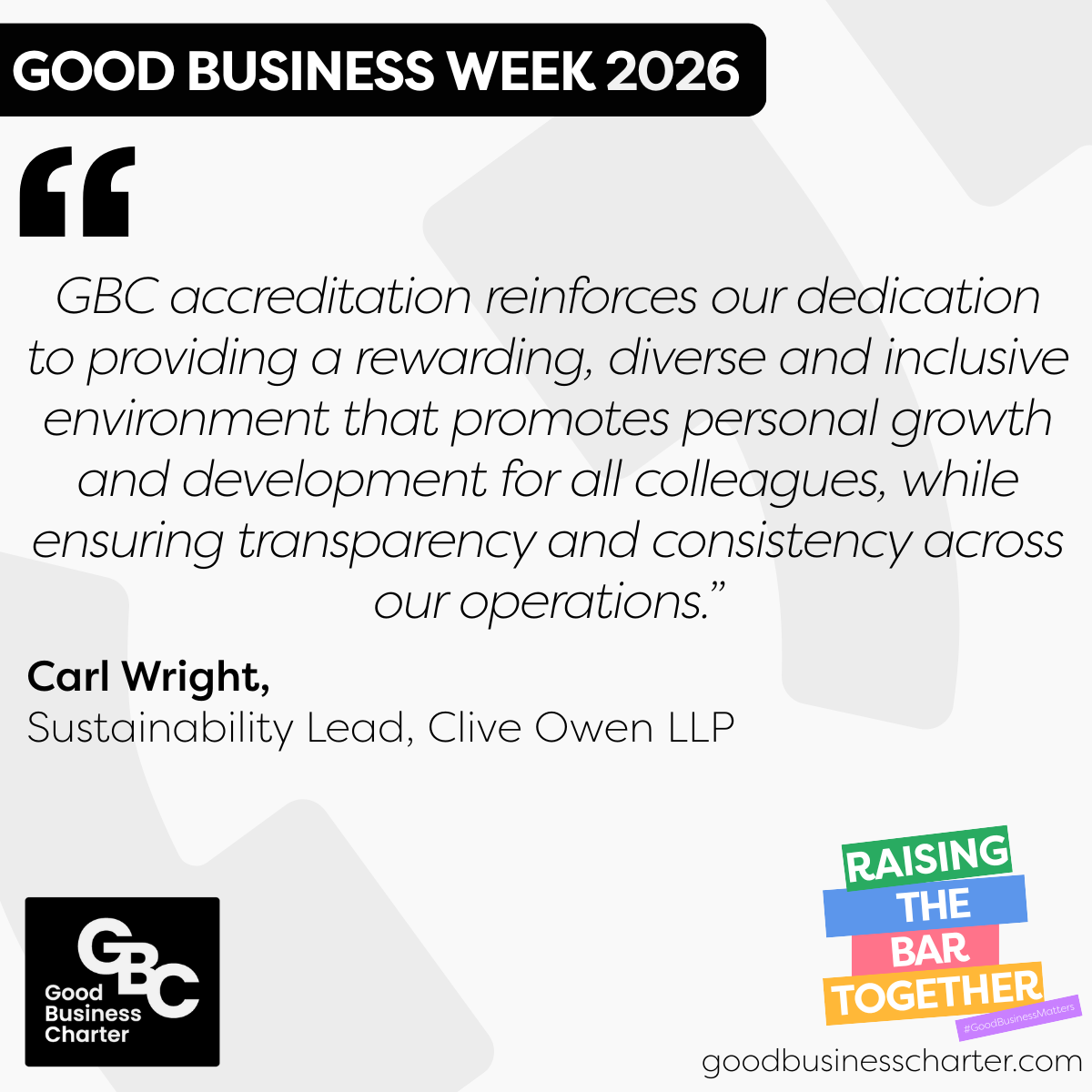 This year’s theme, ‘Raising the Bar Together’, encourages all GBC-accredited organisations and partners to stand together to celebrate and shine a spotlight on why their organisation is championing fairness, sustainability and ethical practices, making a positive impact on their people and the planet, while inspiring others to join the movement.